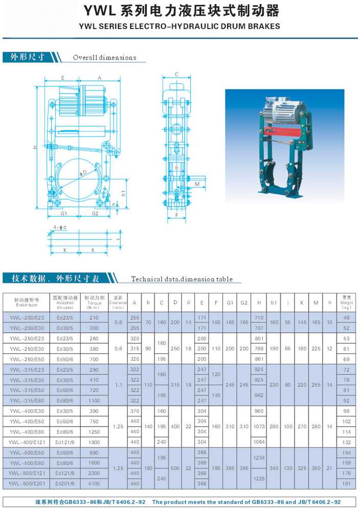 YWL系列電力液壓塊式制動器